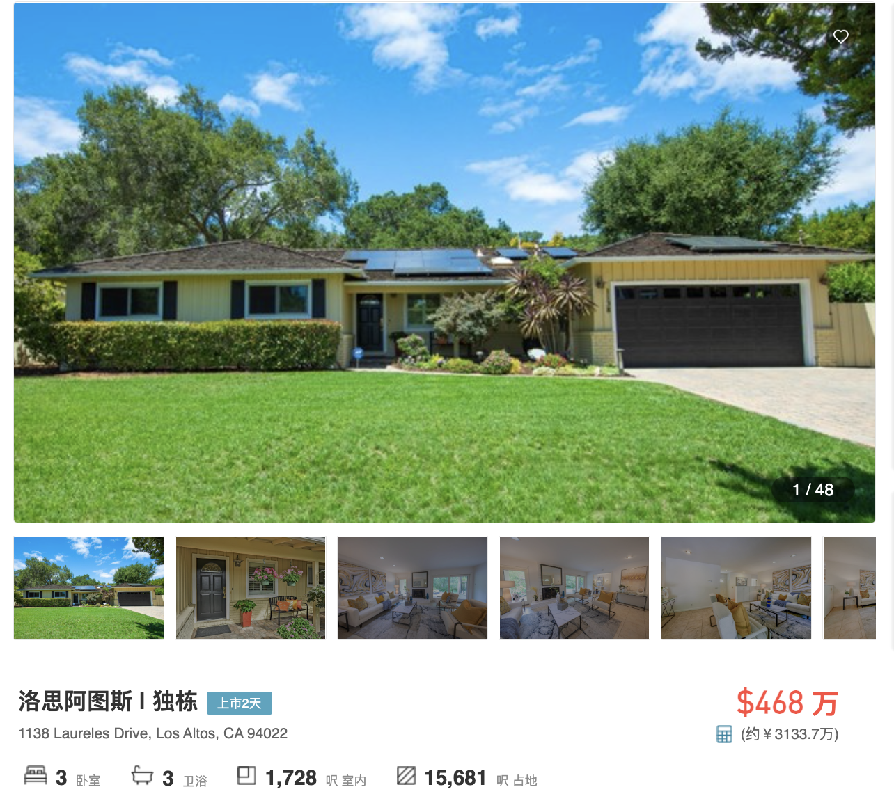 洛思阿图斯Los Altos房价很高,2024年的独栋别墅房价中位数为420万美金,同比上涨了5%。上市房源平均在市场的天数为9天。