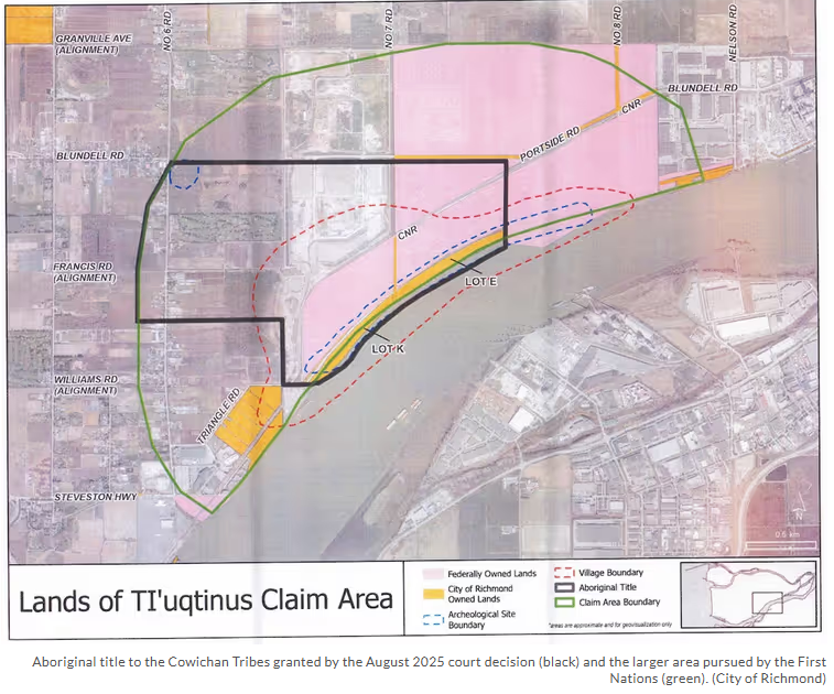 今年8月,卑诗省高等法院(B.C. Supreme Court)的法官杨(Justice Young)裁定,Quw’utsun(Cowichan)族对里士满市约7.5平方公里的土地拥有原住民所有权——这场法律诉讼已经历时11年。这是一宗具有深远影响的案件作出判决——几乎颠覆卑诗省土地制度的根基。