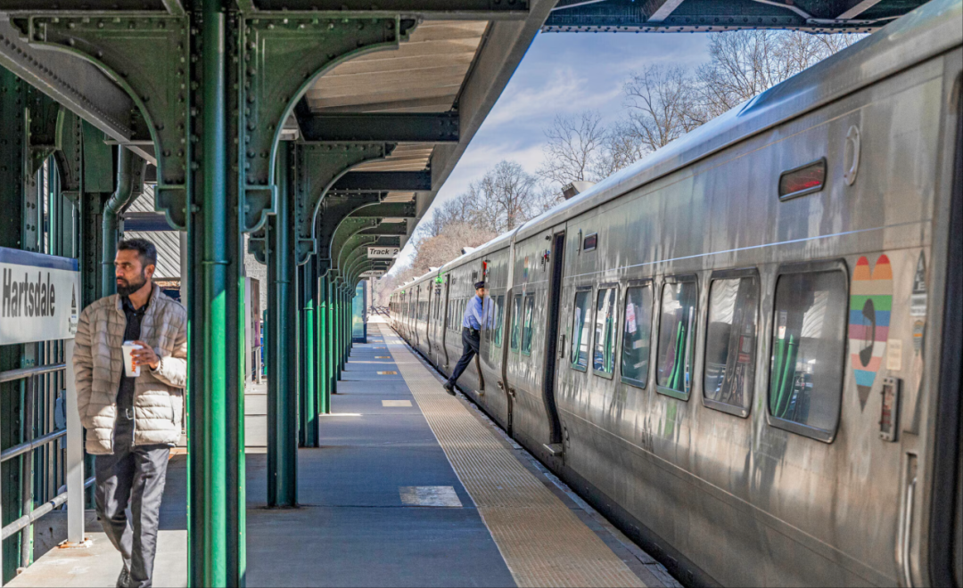 Harstdale火车站每日运营连通曼哈顿的列车线路,为当地居民提供通勤服务