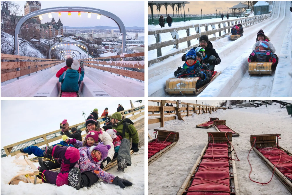 这里可不只是普通的滑雪橇,而是在 Dufferin Terrace 上那条拥有百年历史的滑道上飞驰而下。滑道正对着著名的 Fairmont Le Château Frontenac 酒店,每辆雪橇可容纳四名乘客,非常适合家庭或朋友一起,体验这项经典的冬季传统。