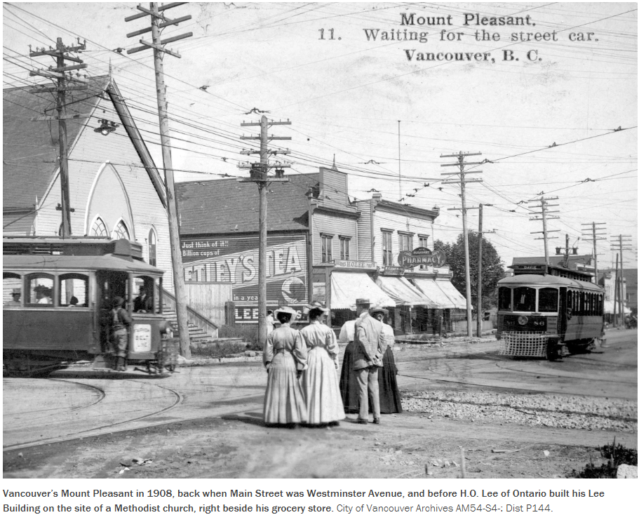 到了 1904 年,Mount Pleasant 已经形成明显的工业雏形:这里有一家制革厂、两家屠宰场、四家啤酒厂,以及一座火车站。工业扩张迅速带动了住宅发展。到 1912 年,社区已经拥有稳定而繁荣的居住人口,并配套建成了多项公共设施,包括一所小学(位于今天的 Kingsgate Mall 一带)、消防站、首轮放映的电影院,以及温哥华第一座“摩天大楼”——Lee Building。