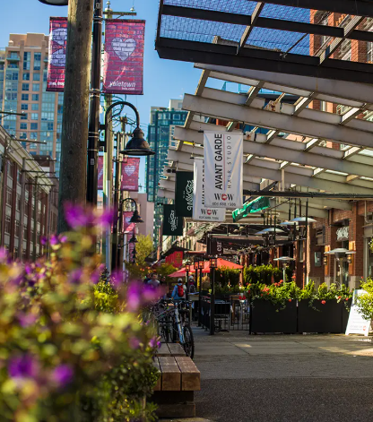 社区的西南角是 Olympic Village 广场,这里是坐下来喝一杯、眺望 False Creek 和市中心天际线的理想地点。Olympic Village 商业区汇集了不少温哥华人气极高的露台餐厅和精酿酒吧,例如 Craft Beer Market、Tap and Barrel、Steel Toad 等,是白天和夜晚都同样迷人的区域。