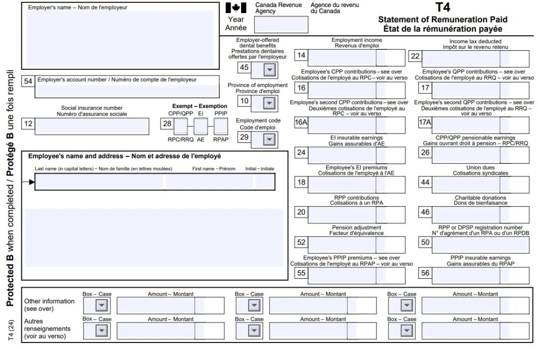 税务居民收到T4后需要核对社会保险号码(Social Insurance Number)、姓名、地址等个人资料。