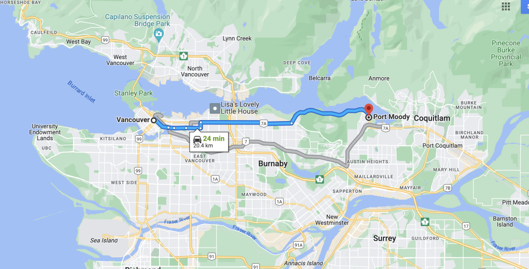 穆迪港(Port Moody),中文又称为满地宝,是加拿大卑诗省的一个城市,位于卑诗省南部,地处大温哥华地区的东侧,靠近菲沙河的出海口,距离温哥华市中心以东约20公里,是大温地区的重要城市之一。穆迪港地处靠近山林的海湾中,被群山环抱,风景秀丽,被誉为卑诗省的“瑰宝”,每年吸引众多游客前来观光旅游。穆迪港(Port Moody)距离温哥华市中心大约有约20公里,驾车需要大约30分钟,可以通过布莱尔路(Barnet Highway)或贝克麦道(Lougheed Highway)到达。此外,Port Moody设有轻轨列车站Evergreen Extension,轻轨列车连接三角洲、科奎特兰和温哥华市中心,方便居民出行。此外,该市还设有多条主要道路,如巴納特高速公路(Barnet Highway)和圆石溪道(Rocky Point Parkway),方便市民出行。