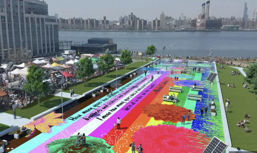 布鲁克林大桥公园(Brooklyn Bridge Park)沿着北布鲁克林此前的工业滨水区绵延1.3英里,每年吸引500万游客。该公园于2021年完工,可欣赏曼哈顿下城和纽约港的景色,园内还有运动场、溜冰场、创意游乐场、码头、大片草地以及一座修复后的玻璃封闭式旋转木马。它对众多社区产生了积极影响多米诺公园(Domino Park)因曾在此处运营的一家制糖厂而得名,于2018年在威廉斯堡沿东河开放。这座毗邻威廉斯堡大桥、占地5英亩的公园内有一个以制糖厂为主题的游乐场、季节性溜冰场、公共艺术作品和休息区。