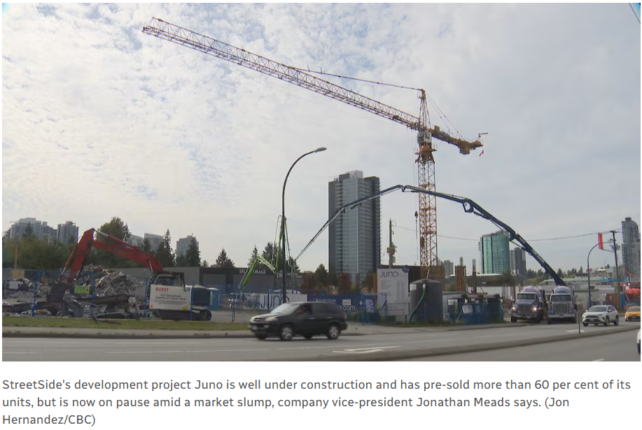 随着公寓销售下滑,素里及BC省其他地区的多家开发商纷纷暂缓未来的住宅项目。有开发商坦言,当前的市场环境让他们几乎无法再建造出普通买家负担得起的住房。