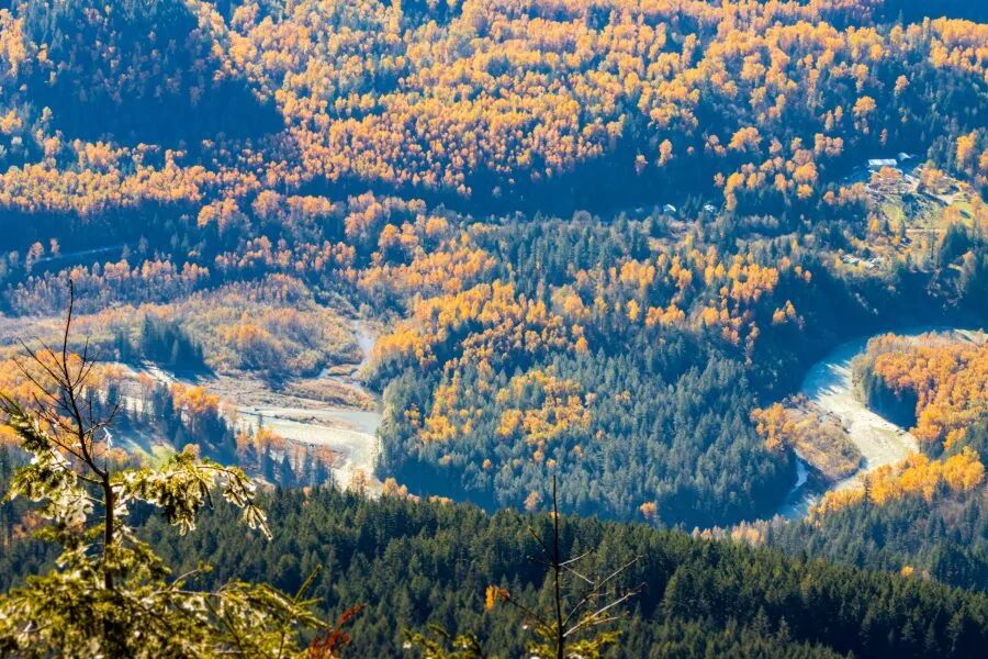 这是菲沙河谷(Fraser Valley)地区的隐藏宝藏,尤其适合凉爽的秋日徒步。全程约3.4公里,爬升300米,来回约需两小时。湖水一年四季都美,但当周围山林染上层层秋色时,景致更是令人心醉。