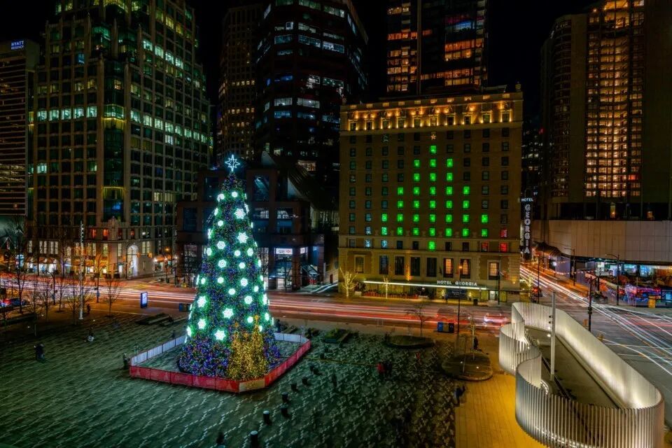 来访者还可以顺便与“加拿大西岸最高的圣诞树”合影留念。圣诞树将在 11 月 28 日举行特别点灯仪式,闪耀整个市中心。
