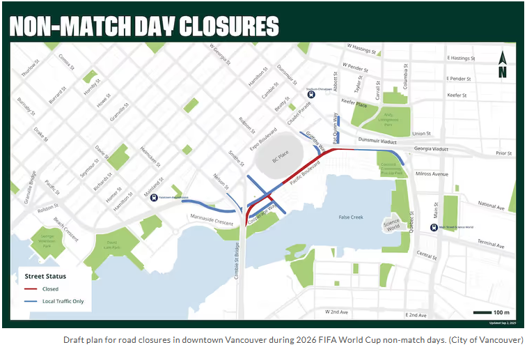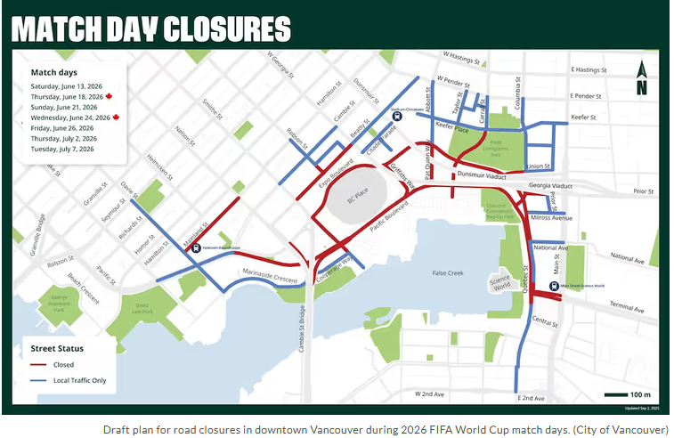 随着温哥华正式迈入 2026 世界杯迎战阶段,BC Place 体育馆(BC Place Stadium)周边的居民、商家与访客,都必须提前为未来数月的交通封路与出行限制做好心理准备。