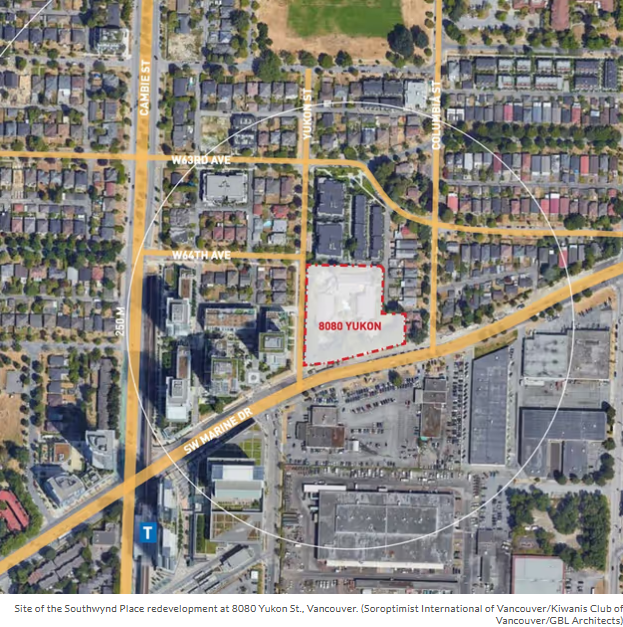 周四(5日)晚间,市议会就Purpose Driven Development公司提出重建位于育空街(Yukon St.) 8080号地块的提案,举行公开听证会上做出了这项决定。该幅1.9英亩土地位于西南海旁大道(Southwest Marine Drive)夹育空街东北角,即海旁大道天车站及公共汽车转运总站的东北方向。