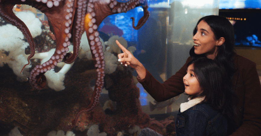 如果你家孩子正处在“对动物毫无抵抗力”的阶段,那水族馆几乎是 Family Day 的保底选项。活动期间,只要购买成人门票,3–12 岁儿童即可免费入场。孩子可以近距离观察海狮、水母、热带鱼,还能遇见鹦鹉和企鹅。现场还会安排适合家庭的互动演出和拍照点,既能玩、也不需要家长一直“带节奏”,整体非常轻松。