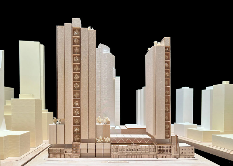 根据已通过的计划,该项目将允许在该地开发一座由两栋塔楼组成的综合用途项目,分别为北塔 43 层、南塔 39 层。