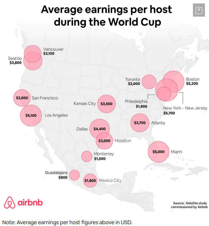 以多伦多为例,像 Liberty Village 这类靠近 BMO Field 的区域,由于将承办 6 场世界杯比赛,预计会成为需求最集中的短租热点。温哥华方面,预计也将吸引超过 20 万现场观众,带来持续数周的住宿需求。