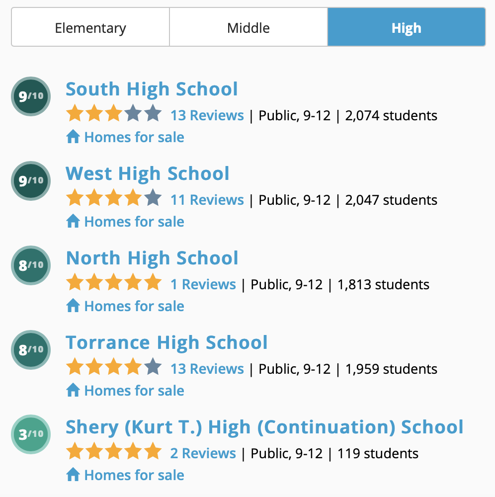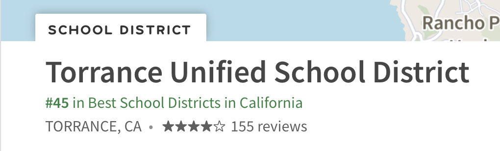 托伦斯联合学区(TUSD)成立于1947年,并于1948年统一。托伦斯联合学区在加州众多学区中排名45,也是一个优秀的学区,学区一共经营着17所小学、8所中学、5所高中,且每个年级段都有评分较高的学校。